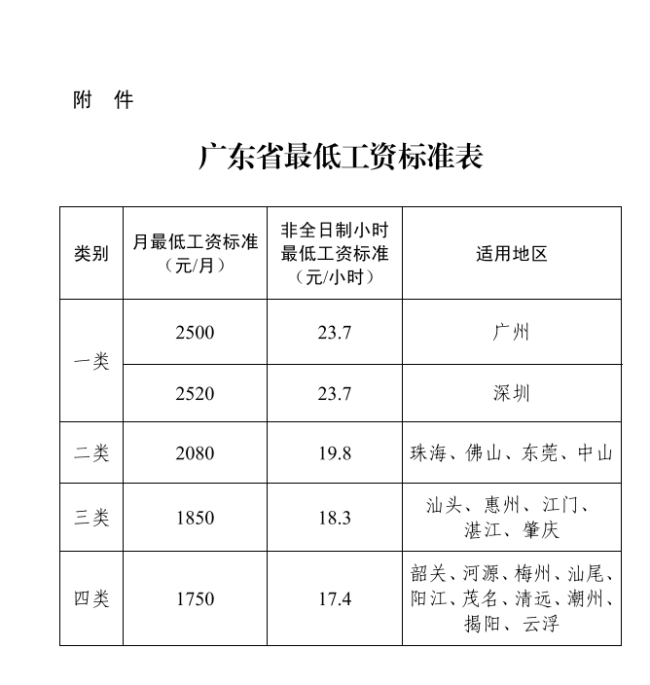 附件:广东省最低工资标准表