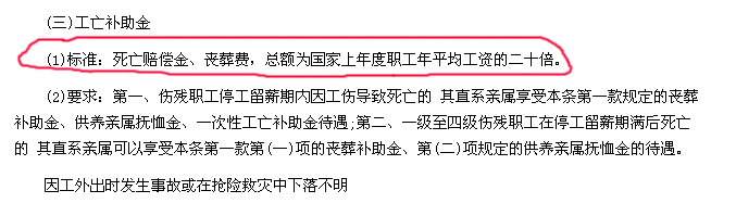 这不是瞎扯淡吗?只要看过《工伤保险条例》的都知道,工伤死亡的,那叫“一次性工亡补助金”,不叫“死亡赔偿金”。同时,工亡补助金的标准也不是按国家上年度职工年平均工资计算的,而是按城镇居民人均可支配收入计算的。“人均可支配收入”与“职工平均工资”是不同的概念,统计的结果也是参考不同的数据获得的。工亡补助金和丧葬补助金是分别计算的,在这里却都算到了一起。